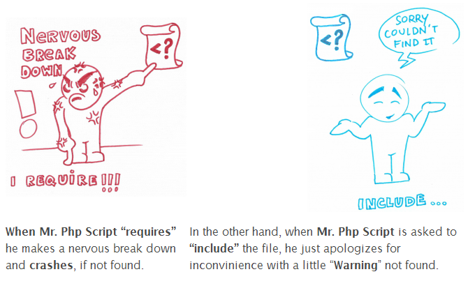 Difference between "include" and "require" in php